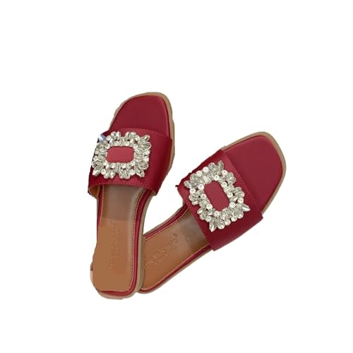 Rhinestone Sandals Rhinestone Sandals Spring Collection Flat Plastic Cushioning Women's Slip On Silk Diamond(Red,42)