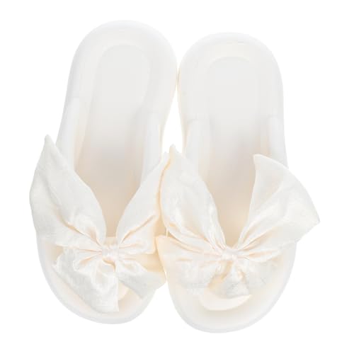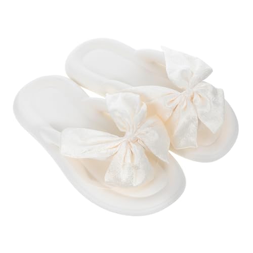DEARMAMY Casual Summer Sandals for Women Non-slip Bow Slide Silk Flatform Sandals with Elegant Bow Detail Soft Sole for Beach Vacation Wedding Outdoor Walking White