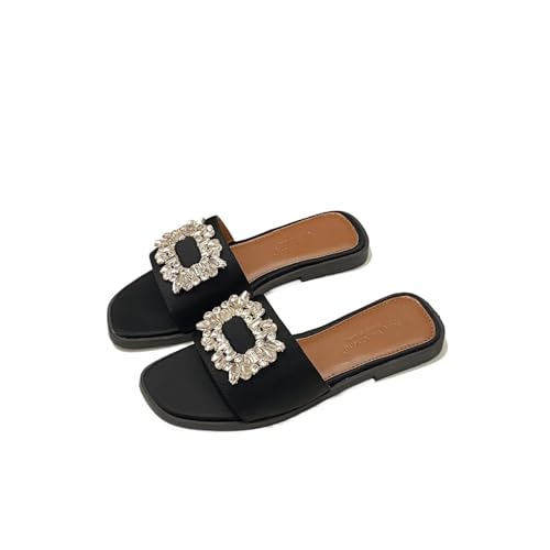 Rhinestone Sandals Rhinestone Sandals Spring Collection Flat Plastic Cushioning Women's Slip On Silk Diamond(Black,41)