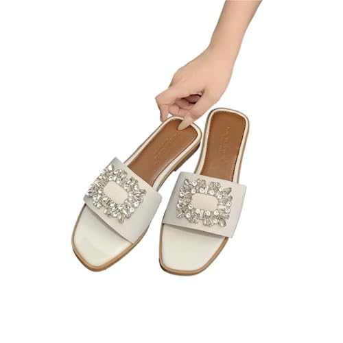 Rhinestone Sandals Rhinestone Sandals Spring Collection Flat Plastic Cushioning Women's Slip On Silk Diamond(White,42)