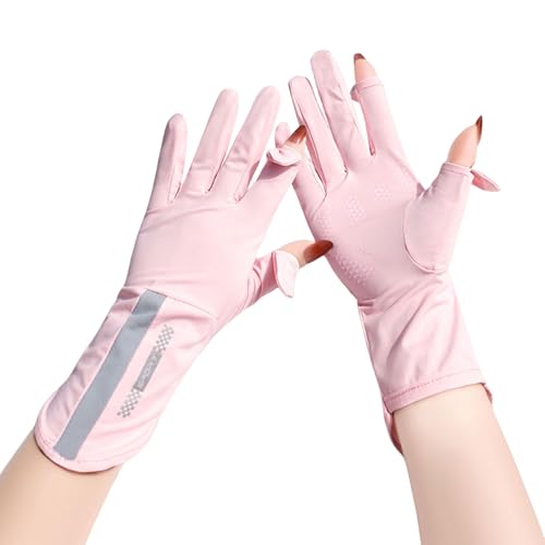 Symphonyw Women UV Sun Protection Gloves, Summer Ladies Driving Gloves Touch Screen Non Slip Ice Silk Full Finger Cycling Gloves Mittens for Driving Riding Hiking Fishing Outdoor Activities (B Pink)
