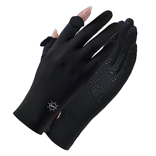 Women's UV Sun Protection Gloves, Non Slip Breathable Ice Silk Gloves for Driving, Riding, Golf, Fishing and Cycling, Opening Design of Index Finger and Thumb, Black
