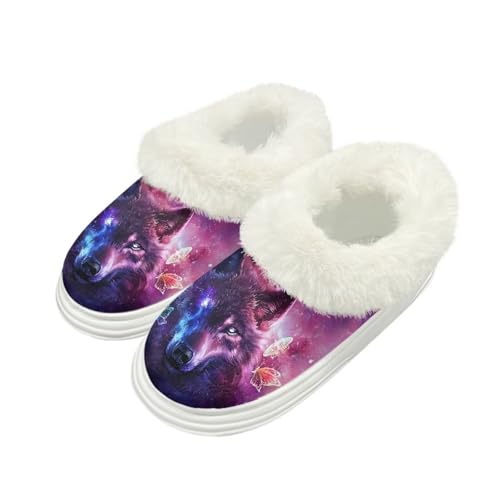 Cugasmaru Wolf Slipper Boots for Men Memory Foam Slippers for Women Size 6 Soft Fuzzy Lined Warm Non-Slip Lightweight Indoor Outdoor House Shoes