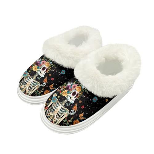 Cugasmaru Skull Shoes Slipper Boots for Men Size 6Fuzzy Warm Cozy Machine Washable Non-Slip Boot Slippers for Men Indoor Outdoor Bedroom Slippers for Adults