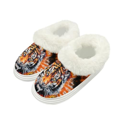 Cugasmaru Tiger Boot Slippers for Men Size 6Fuzzy Warm Shoes Animal Print Cozy Machine Washable Non-Slip Slipper Boots for Men Indoor Outdoor Bedroom Slippers for Adults and Teens