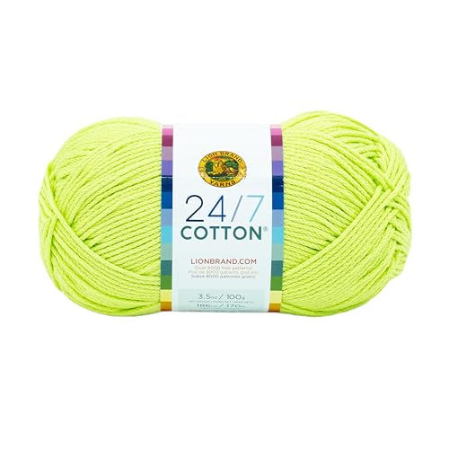 Lion Brand Yarn 24/7 Cotton, Mercerized Lightweight Yarn for Knitting, Crochet, and Crafts, Lime, 1 Pack