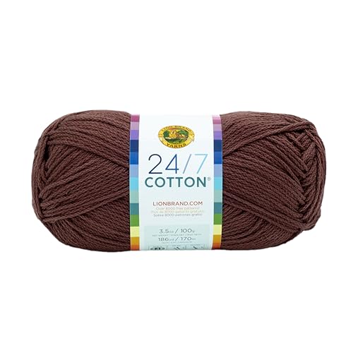 Lion Brand Yarn 24/7 Cotton, Mercerized Lightweight Yarn for Knitting, Crochet, and Crafts, Coffee Beans, 1 Pack