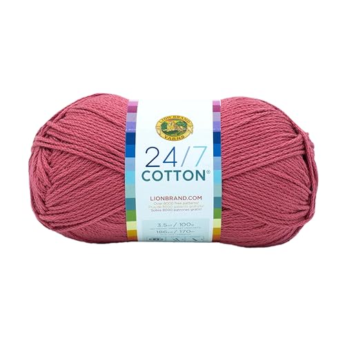 Lion Brand Yarn 24/7 Cotton Yarn, Beets, One Pack