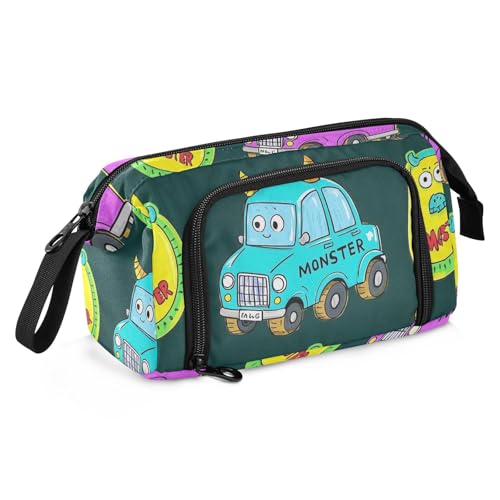 Monster Car Colorful Green Pen Case Large Capacity Pencil Organizer Case with Slot for College Student School Must Haves