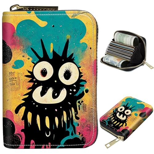 BWEGRHE Small Travel Wallets Slim Multi-slot Card Organizer Case Cute Credit Card Holder RFID-Blocking Card Case Small Wallet for Women Men, Watercolor Monster, Portable, Classic