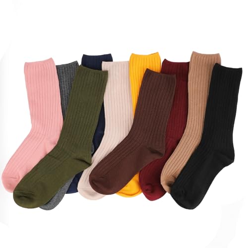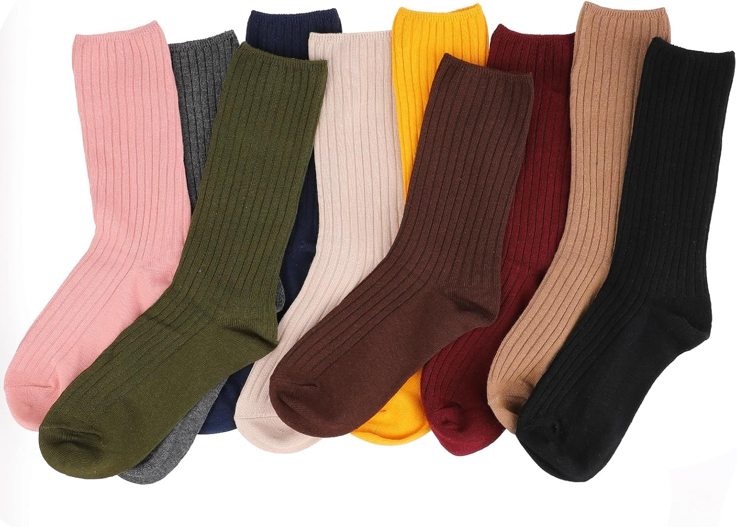 Mozeat Lens 10 Pairs Long Slouchy Socks for Women, Comfortable Women's Cute Cotton Crew Socks Colored Athletic Socks for Women