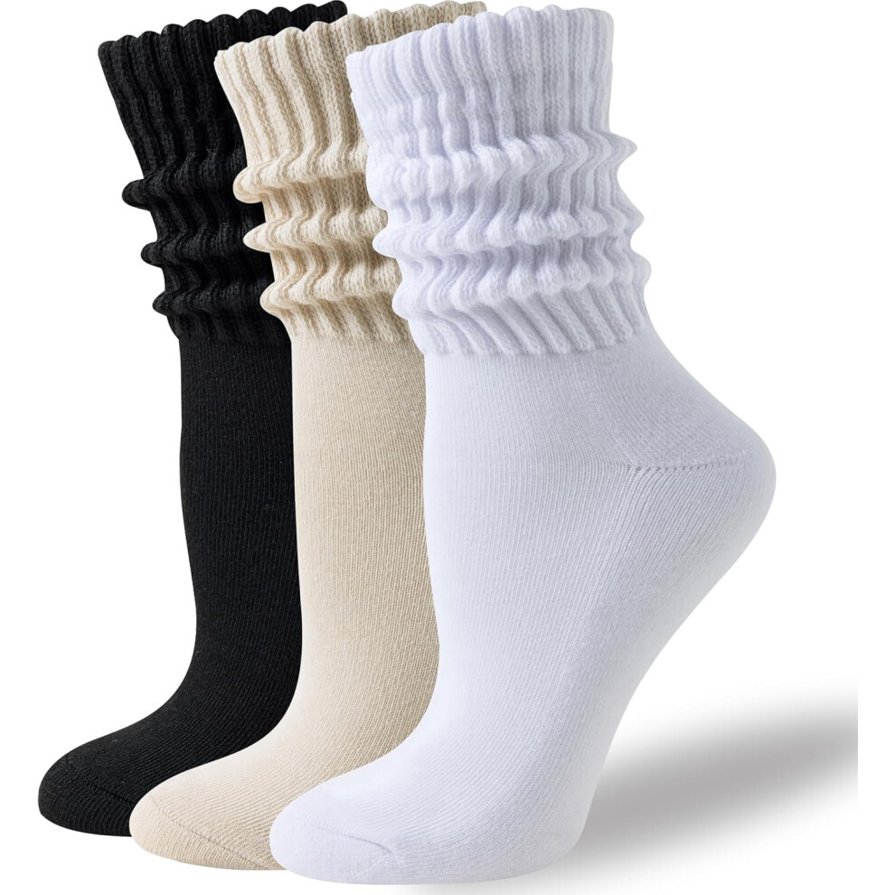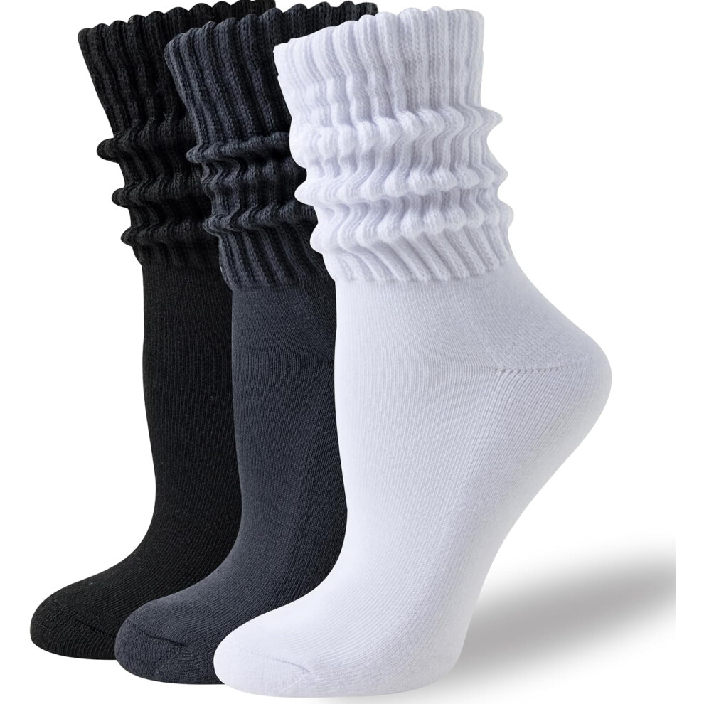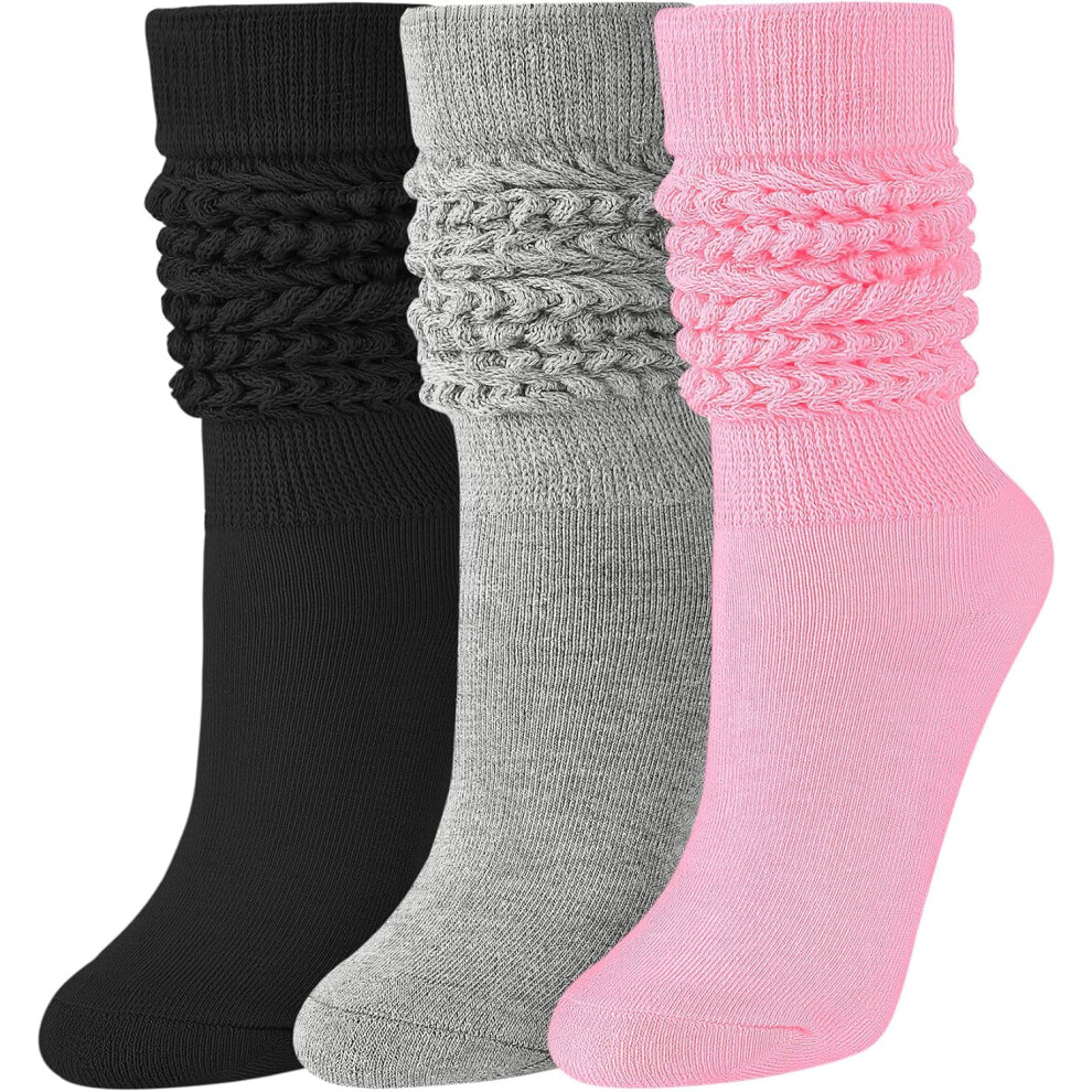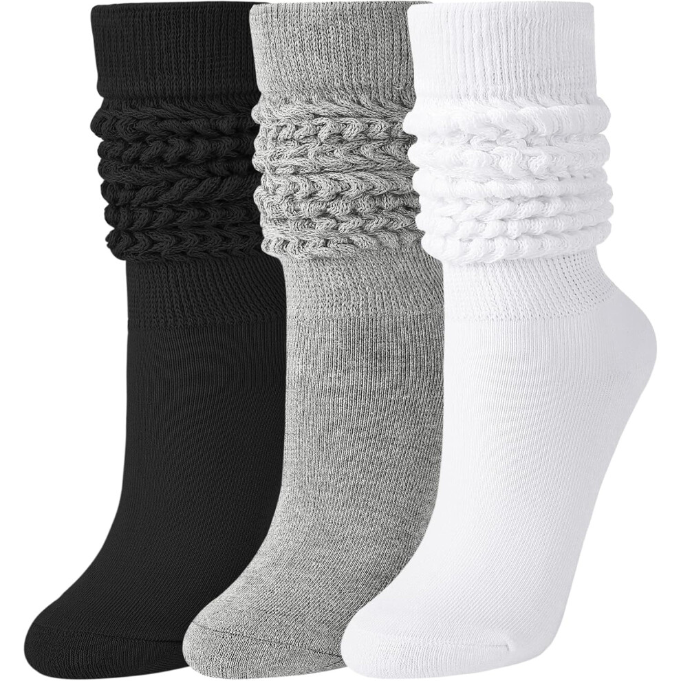 Slouch Socks Womens Scrunch Knee-High Boot Socks Slouchy Extra Long Soft 3 Pairs Stacked Socks Size 5-11