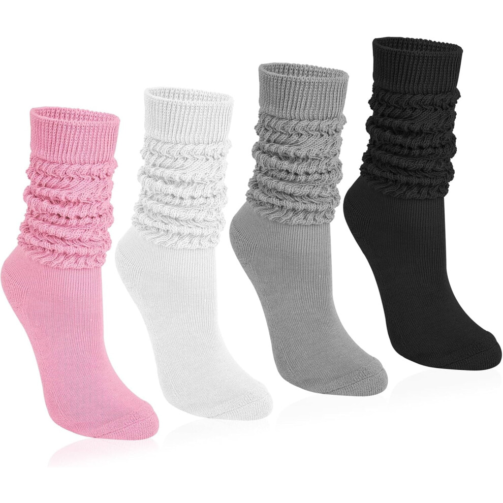 4 Pairs Women Slouch Socks Soft Knee High Scrunch Slouchy Socks Knit Tube Extra Long Socks for Women