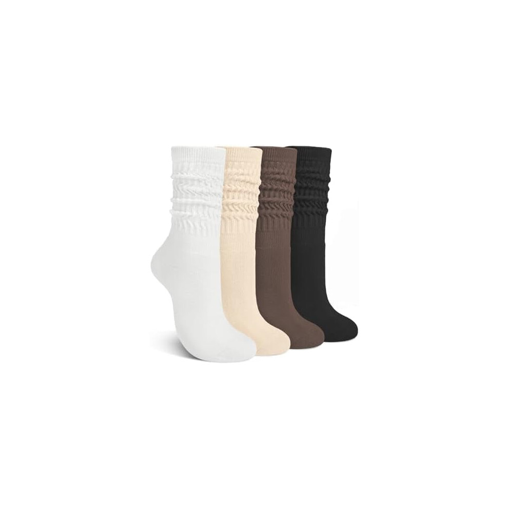 Muorruo 4 Pairs of Women's Slouchy Socks, Scrunch Slouch Long Crew Knit Boot Athletic Calf Tube, Aesthetic Neutral Slouch Socks Made of Cotton for Athletes, Boots and Casual Girls