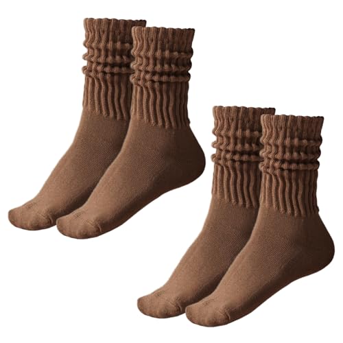 Zimoer 2 Pairs Women's Slouchy Crew Socks - Long Scrunch Breathable Calf Socks - Soft Stacked Knit