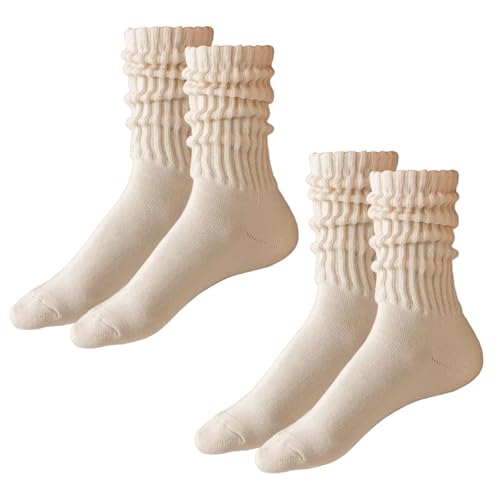 Zimoer 2 Pairs Slouch Socks for Women, Knit Women's Slouch Sock, Long Scrunch Crew Sock, Breathable long Calf Socks for Women, Slouchy Crew Socks, Scrunch Stacked Socks, Soft Women Crew Socks (Beige)