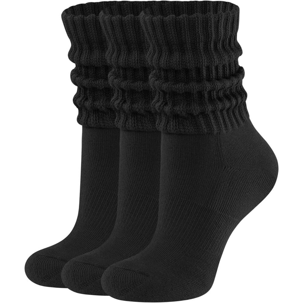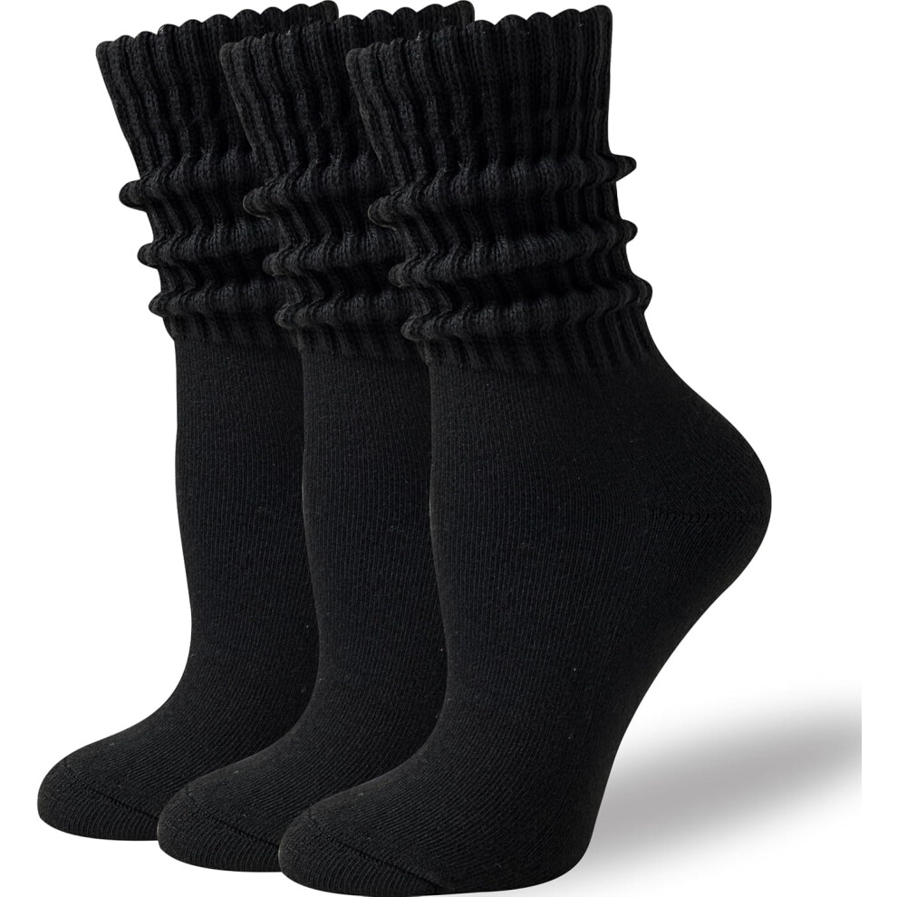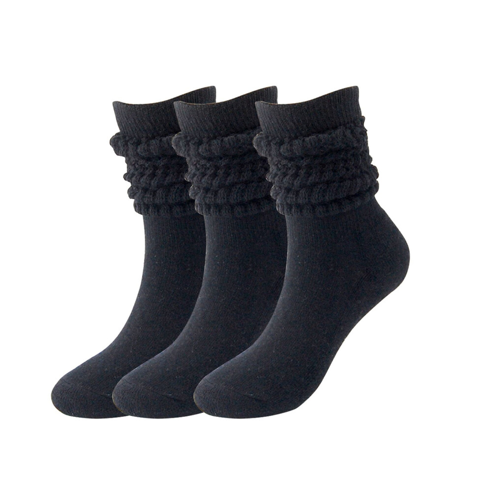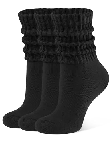 CLOSEMATE Womens Scrunch Crew Socks Retro Soft Cotton Cozy Slouchy Socks for Sneakers Boot 3 Pairs (3Black)