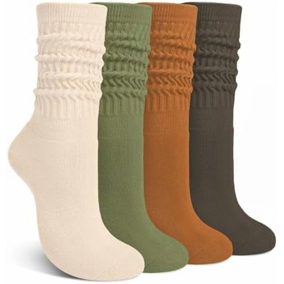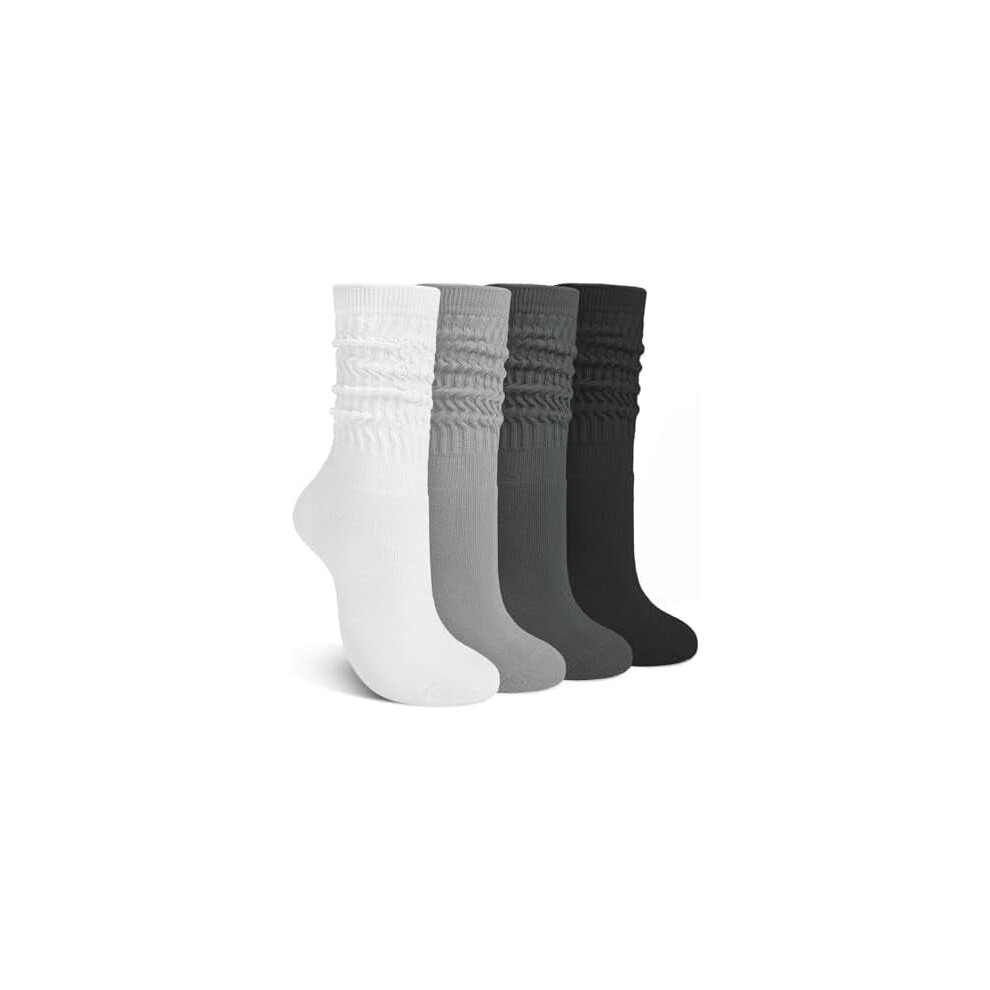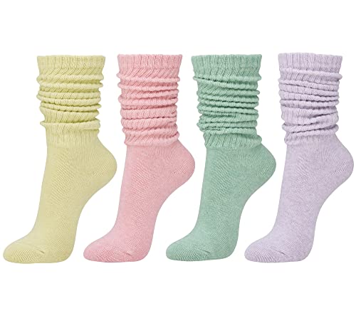 STYLEGAGA Women's Fall Winter Slouch Knit Socks - Slouchy & Scrunch Socks, 4 Pairs, One Size, Soft Cotton, Basic Colors