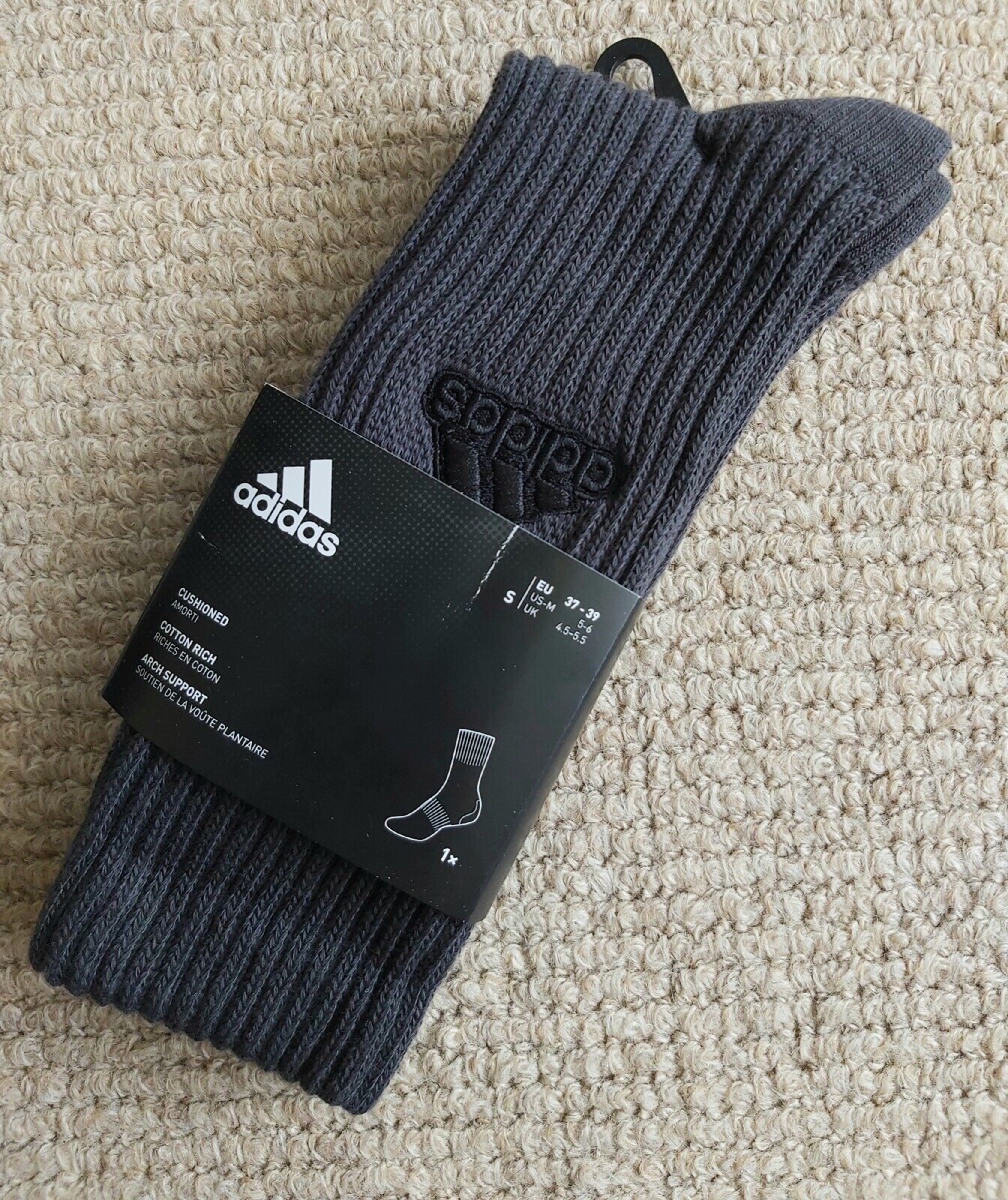 M UK 6.5-8 ADIDAS Carbon Black CUSHIONED SLOUCHY 88% Cotton SOCKS 39-42 ADI4