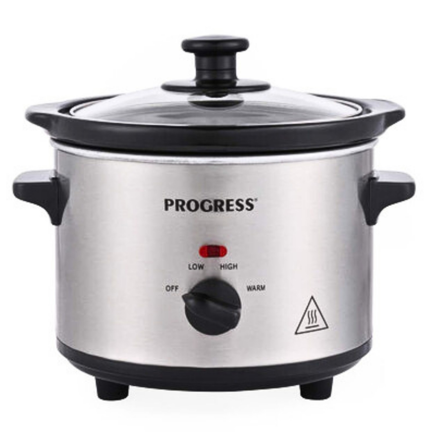 Progress 1.5L Slow Cooker Stainless Steel Slow Cook Removable Ceramic Curry Pot