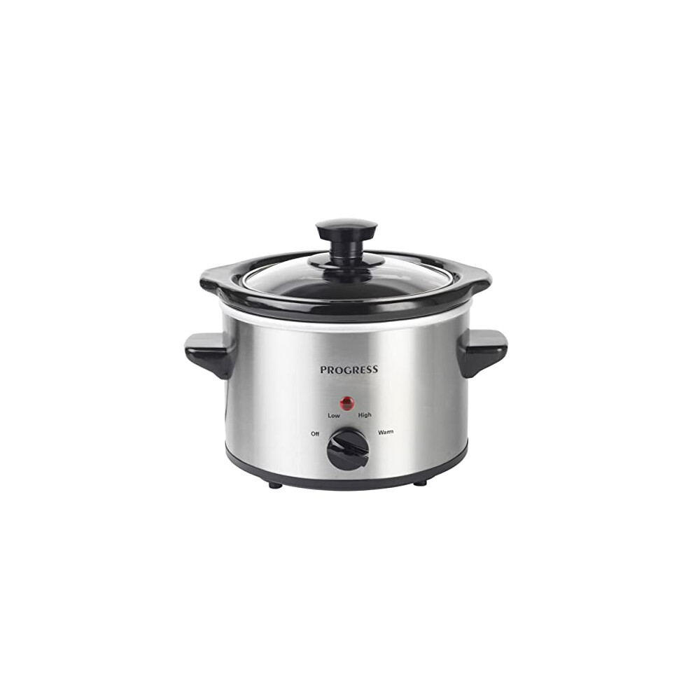 Progress EK2621P Stainless Steel Slow Cooker With Lid - 3 Heat Settings, 1.5L Removable Easy Clean Ceramic Bowl, Serves 1-2 People, Energy Efficient, Versatile Batch Cooking, Power Indicator Lights