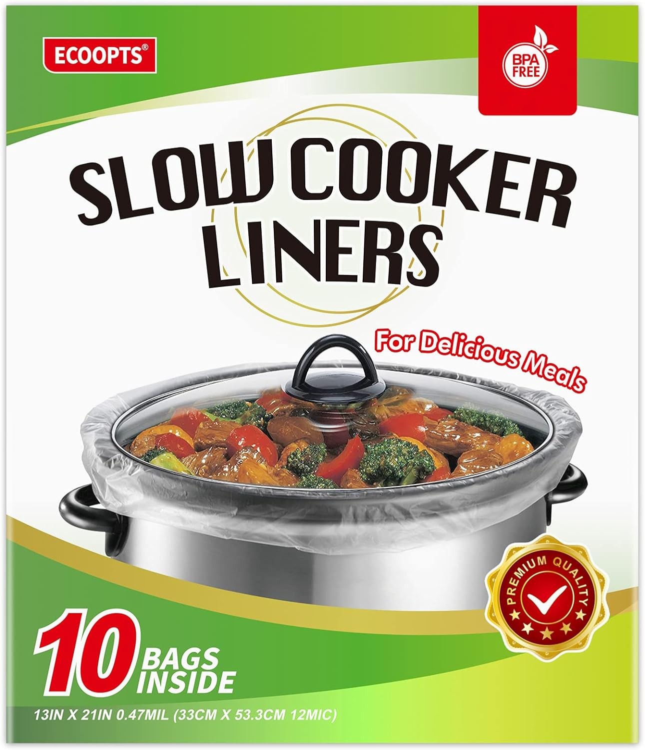 10 Count Slow Cooker Liners by ECOOPTS | Large Cooking Bags Fit 3-8.5 Quarts (1