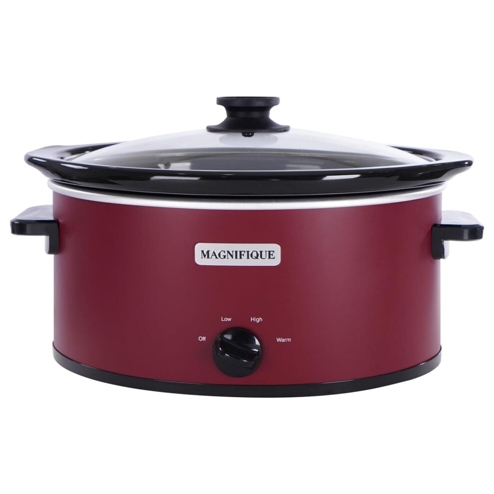 Magnifique 6 Quart Slow Cooker Oval Manual Pot Food Warmer with 3 Cooking Settings, Red Stainless Steel