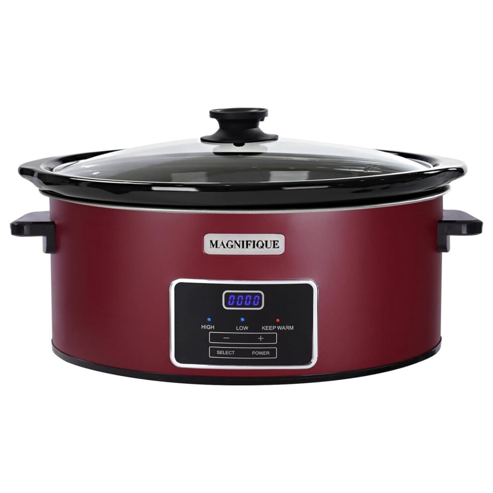 Magnifique 6 Quart Programmable Slow Cooker, Kitchen Appliances, Perfect Kitchen Small Appliance for Family Dinners, Red Stainless Steel
