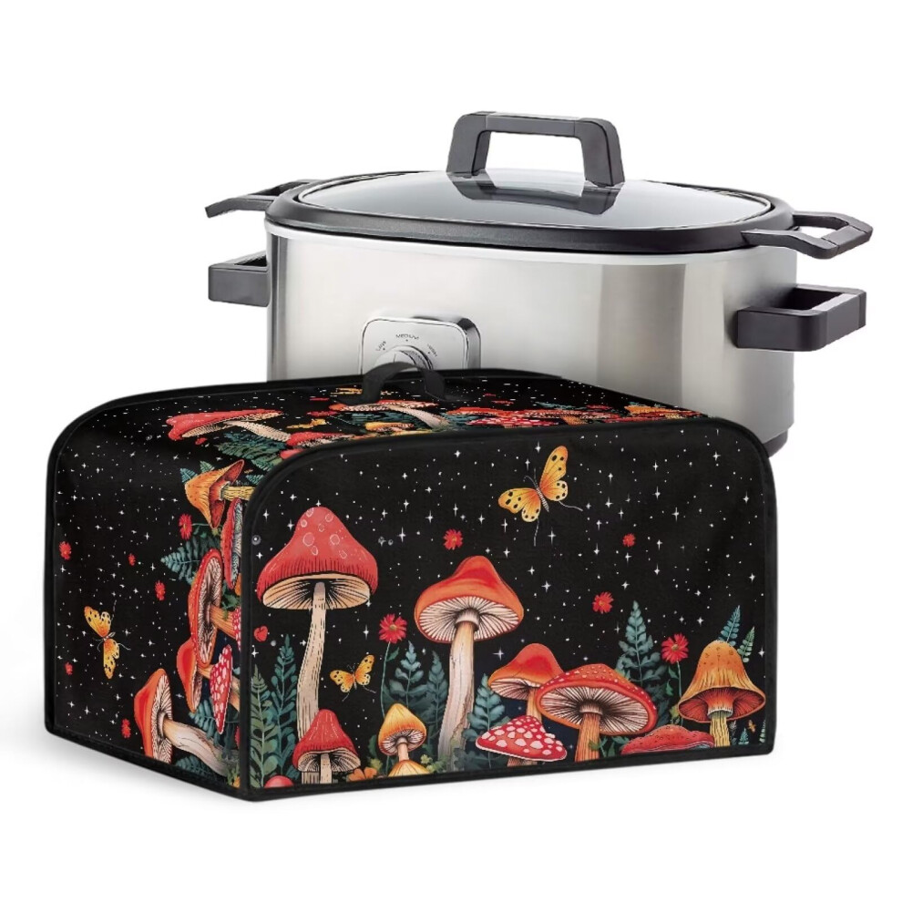Waterproof Slow Cooker Cover with Elastic Fit and Side Pockets, Red Mushroom Pattern Dust Protector