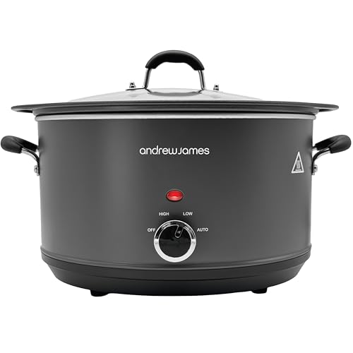 Andrew James 6.5L Slow Cooker – Sear-to-Simmer - Large Hob-Proof Aluminium Pot, Shatter-Resistant & Easy-Clean Design 3 Heat Settings & Glass Lid, Ideal for Family Meals, Curries & Batch Cooking