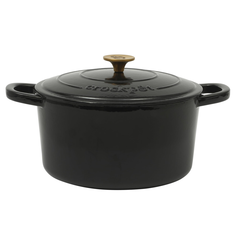 Crock Pot Artisan 7-Quart Round Cast Iron Dutch Oven With Lid - Black W/Gold Knob