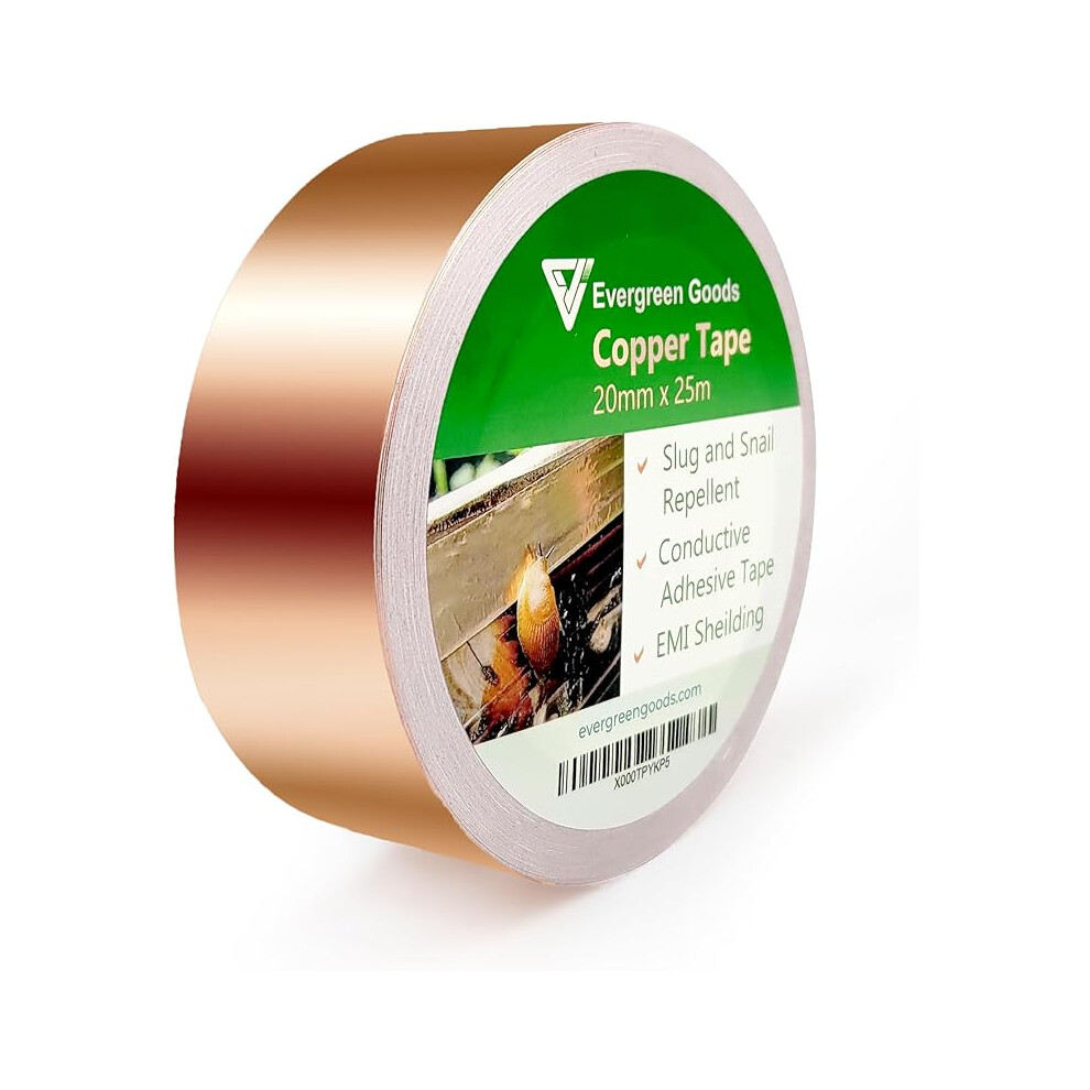 EVG Copper Slug Tape Adhesive Copper Slug Snail Repellent Slug Deterrent Barrier Tape Humane Pest Control 20mm x 25m