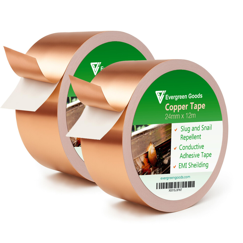 Copper Tape Slug Repellent (50mm wide, 12M Roll) - Double-Sided Conductive Adhesive Tape for Shielding & Guitar Repairs, Grounding, Paper Circuits,