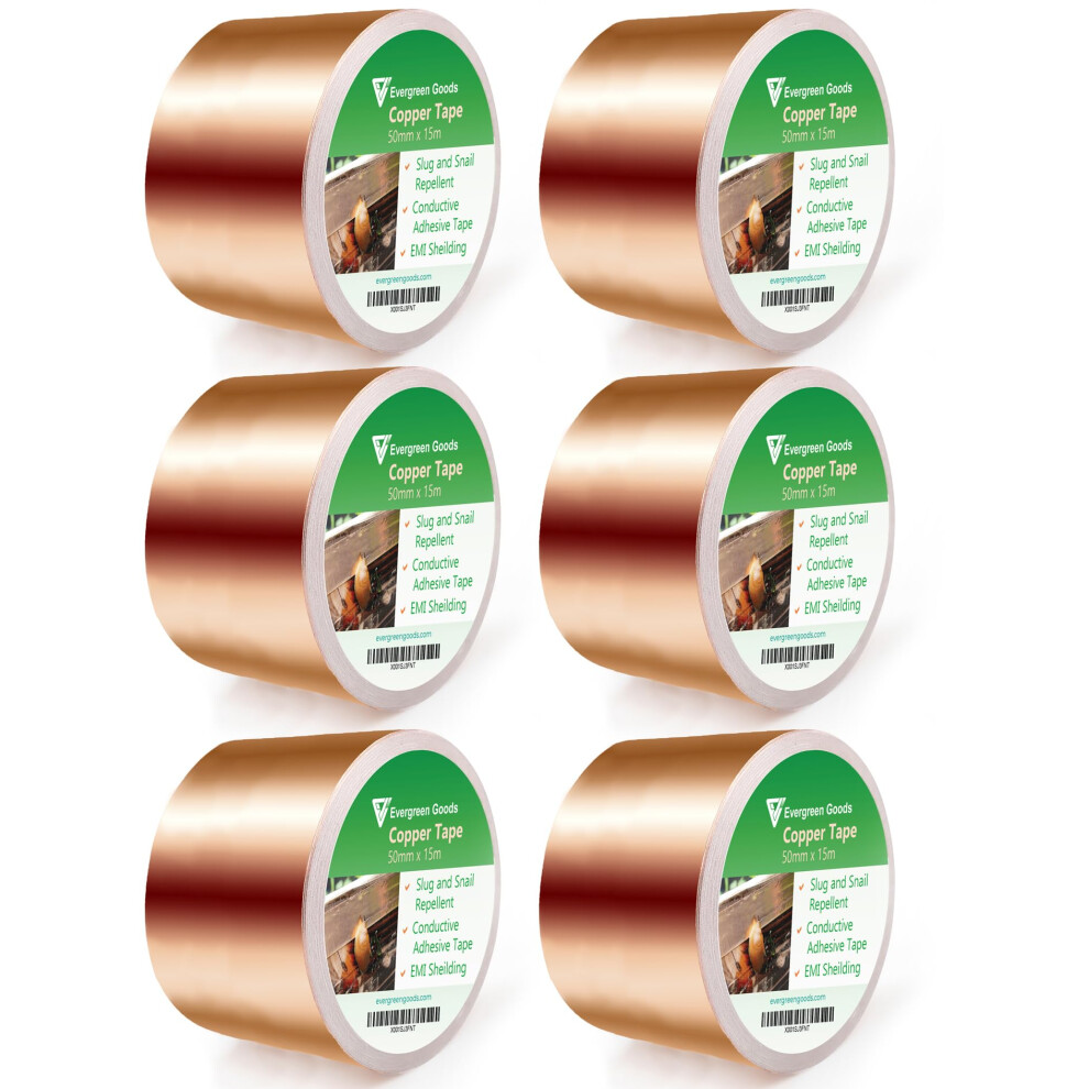 EVG 50mm x 15m Slug Copper Tape | Adhesive Copper Tape Slug Snail Repellent | Slug Deterrent Barrier Copper Foil Tape for Humane Pest Control |