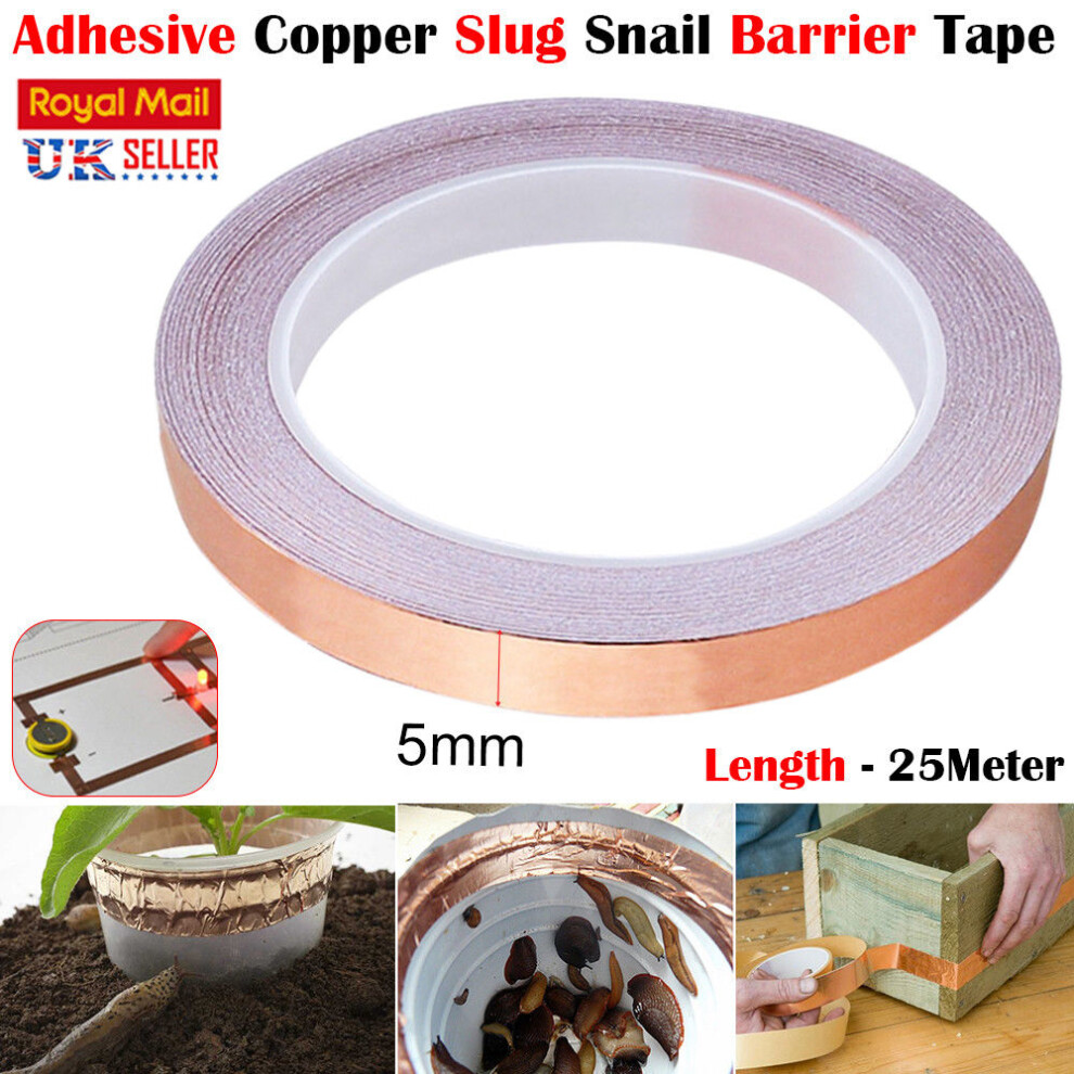 25M 5mm Adhesive Copper Slug Tape Snail Barrier conductive Repellent Guitar EMI