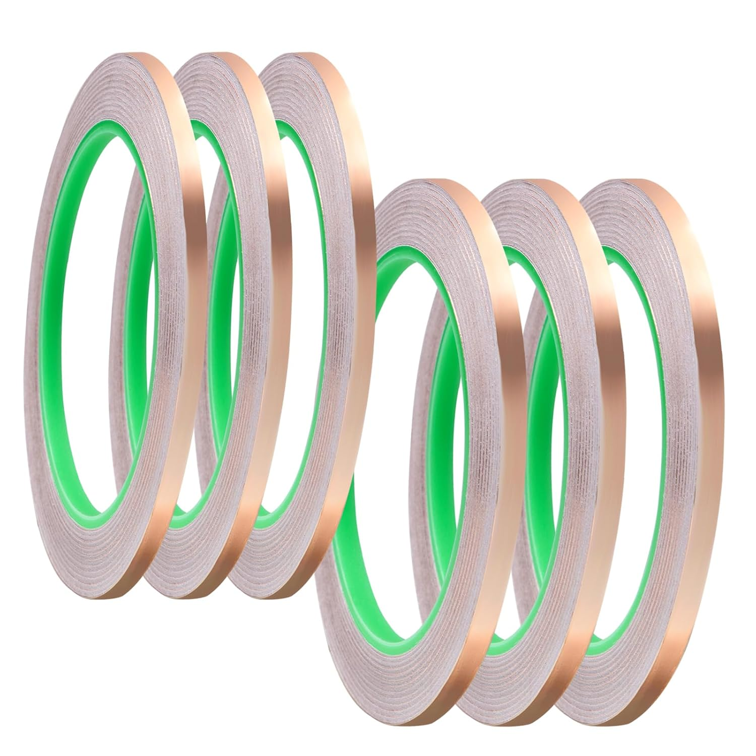6 Rolls Copper Tape Slug Repellent, 3mm & 5mm x 25m Copper Foil Tape, with Cond