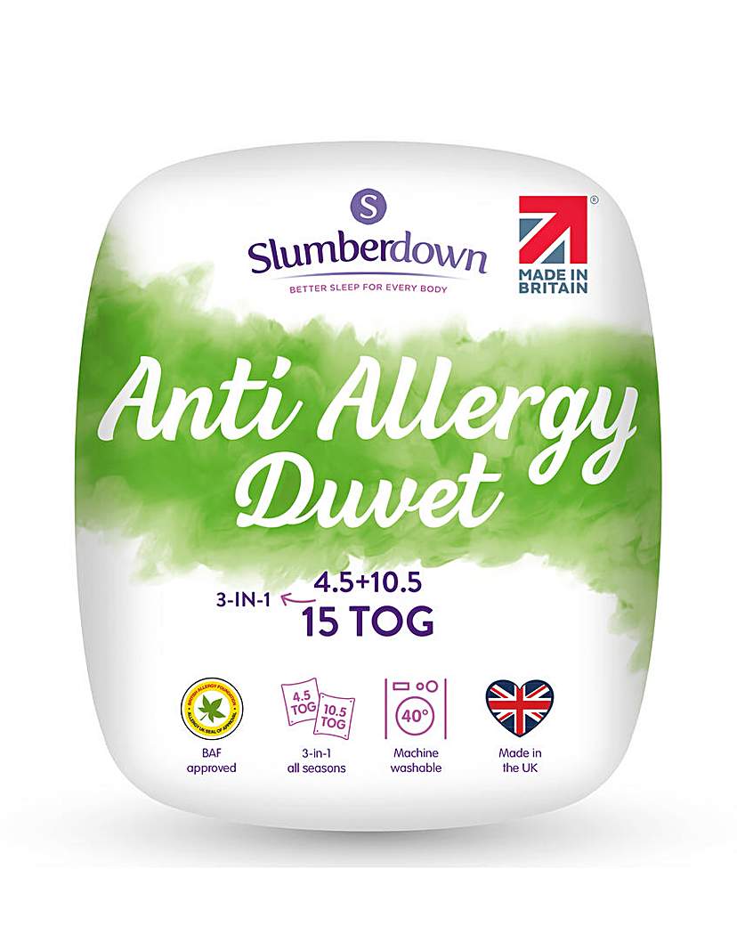 Anti Allergy Duvet All Seasons by Slumberdown 15 Tog (10.5 + 4.5 Tog) King Size