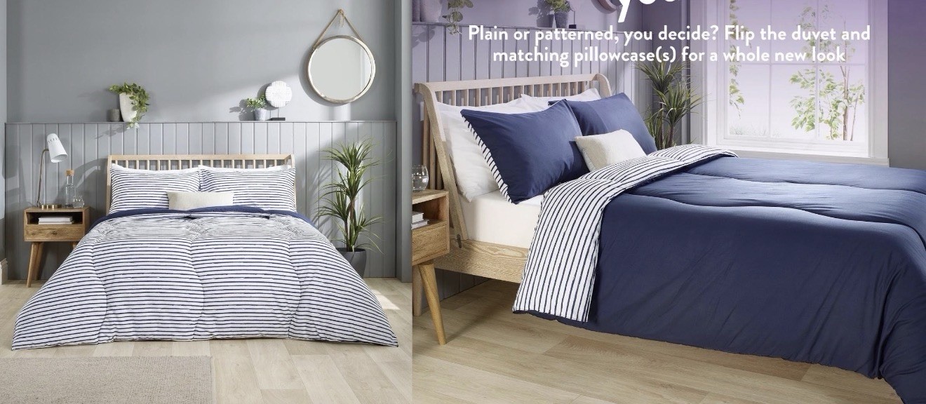 Slumberdown Coverless Duvet Single 9 Tog - 2-in-1 Printed Design with Matching Pillow Case Reversible All Year Round Quilt - Hypoallergenic, Machine Washable, Made in the UK, Navy (135 x 200cm)