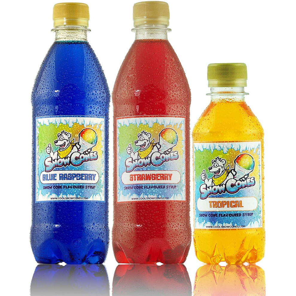 Blue Raspberry & Strawberry Syrup Pack with FREE Tropical - Compatible with ALL Slush Puppie - Slushie - Slushy & Snow Cone Machines