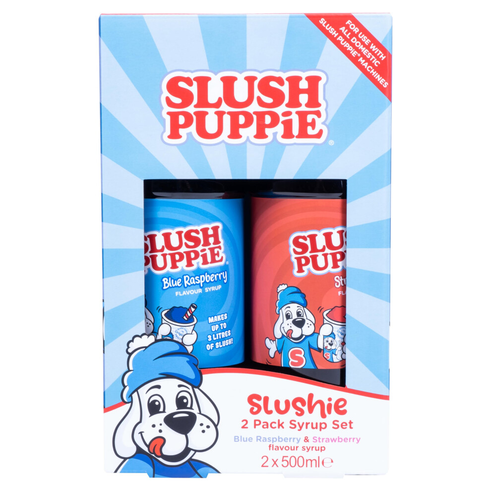 Slush Puppie Syrup Pack of 2 Flavours. Includes Iconic Blue Raspberry & Strawberry flavours. 2 x 500ml Bottles. Officially Licensed Slush Puppy
