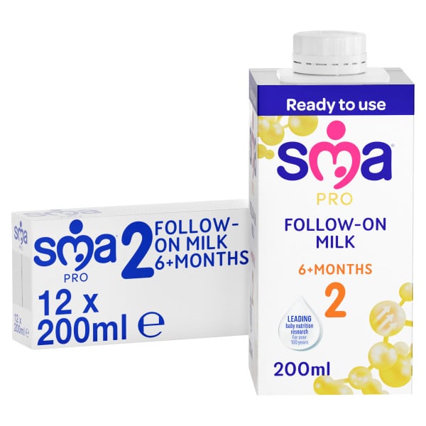 SMA PRO 2 Follow On Milk 200ml x 12 Ready to Drink formula Baby 6 Months+ uk