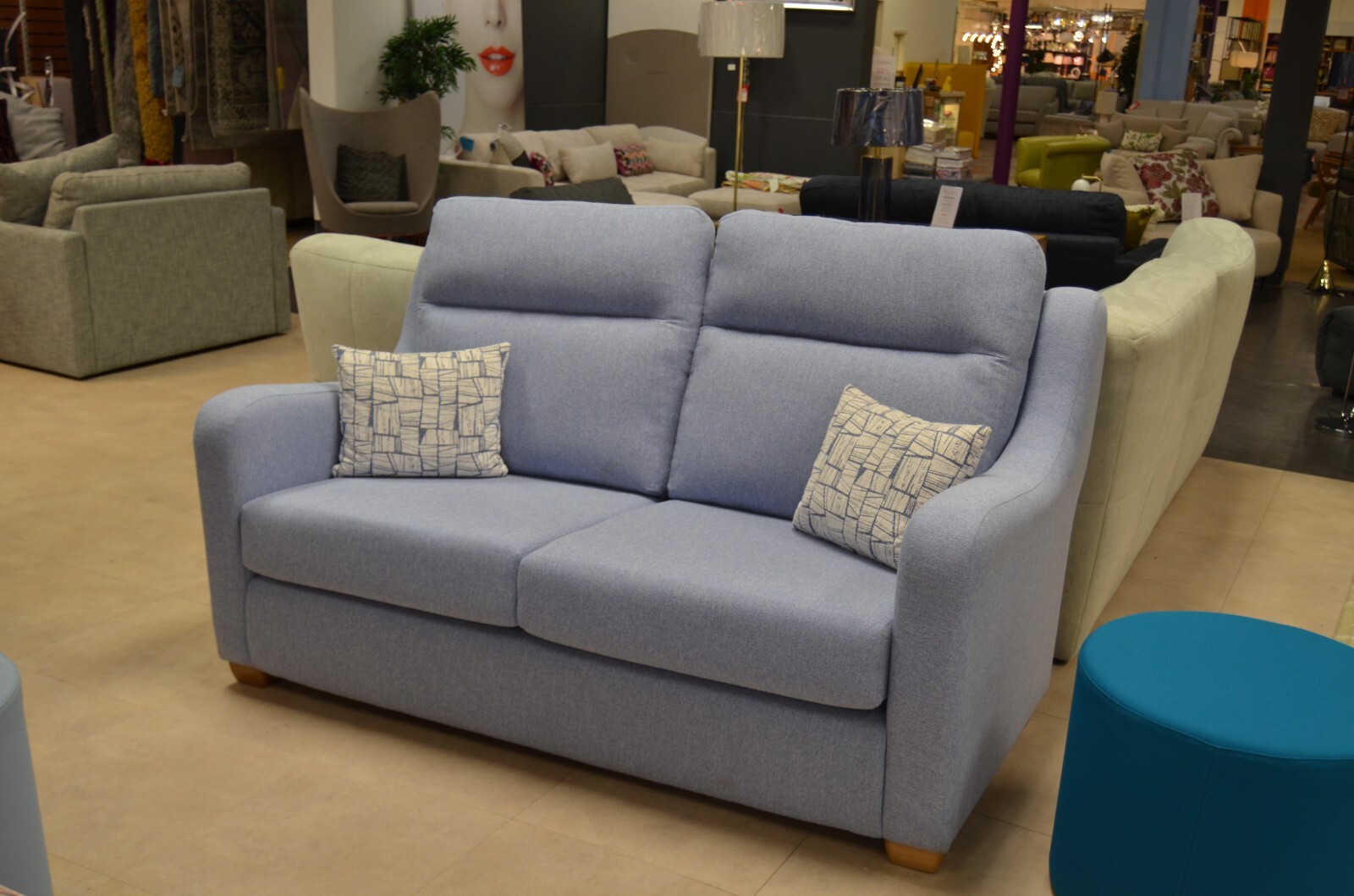 Small Sofa 3 Seater Aspen Blue Fabric Couch Compact Settee Ex Display Clearance