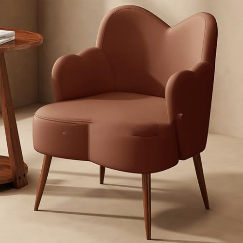 Leather Accent Chair Modern Living Room Chair with Arms Comfy Upholstered Dining Chair Side Chair Desk Chair with Wood Legs for Kitchen Bedroom Small Corner (Color : Brown)