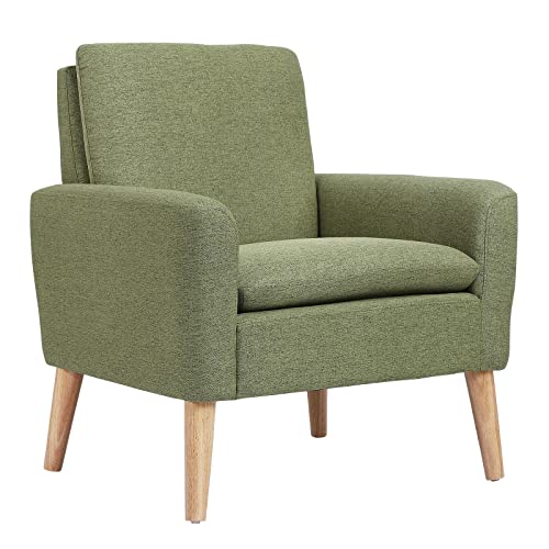 VINGLI Mid-Century Modern Accent Armchiar for Small Space, Small Comfy Upholstered Leisure Reading Chair with Wood Armrest for Bedroom, Living Room, Waiting Room, Linen Dark Green