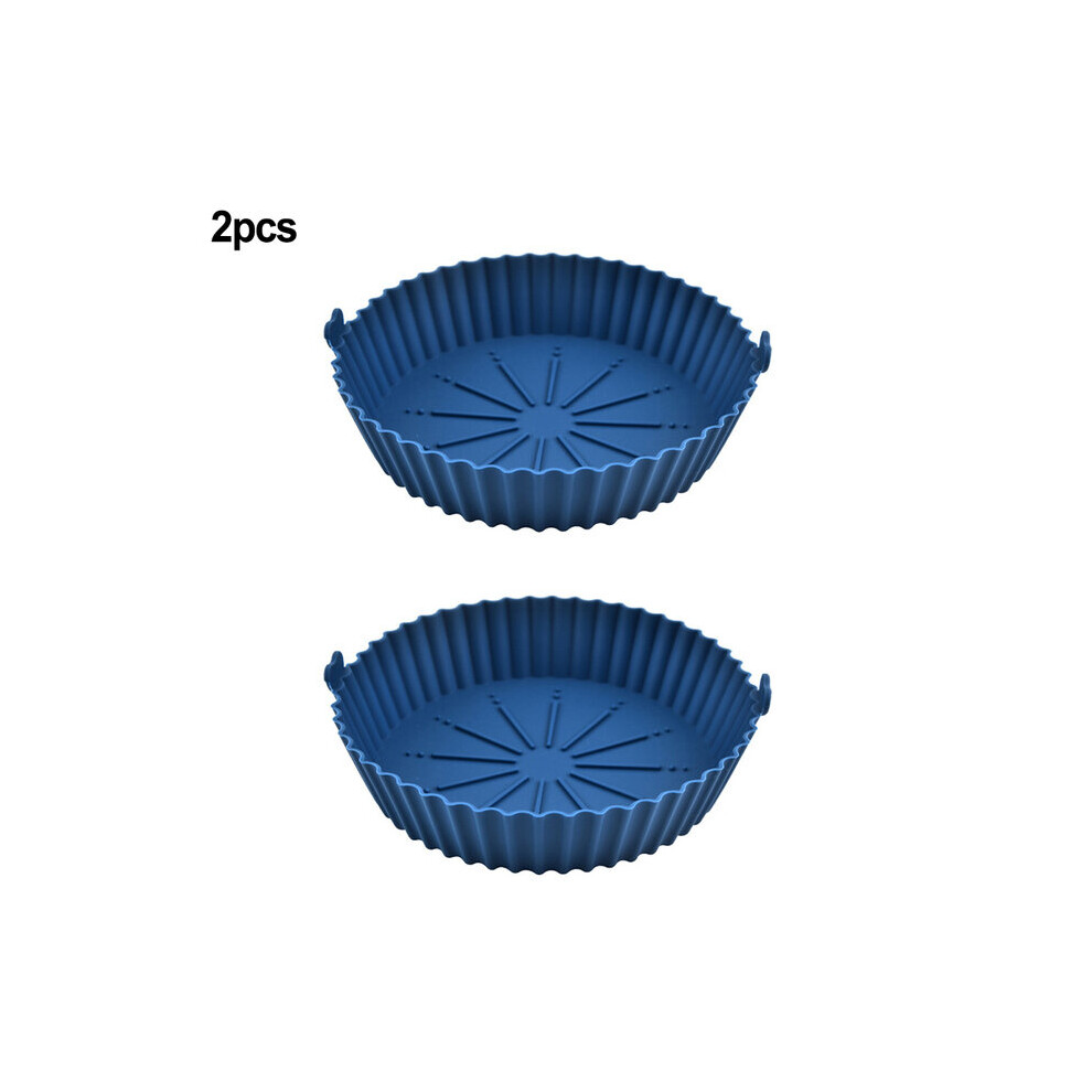 (Blue small) Air Fryer Silicone Basket Reusable Round Air Fryer Bowl Grill Pizza Oven Baking Trays Pan Mats For Home Kitchen Baking Mold
