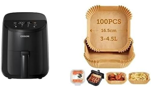 COSORI Small Air Fryer, Simple Touch-control and Led Display Screen, 900W, Energy-saving & COSORI Air Fryer Liners, 100 PCS Unbleached Non-Stick Square Disposable Airfryer Paper Liner