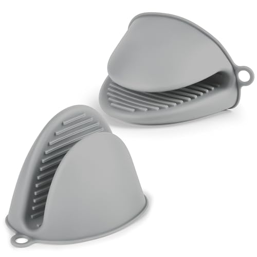 AUAUY 1 Pair Mini Silicone Oven Mitts, Heat Resistant Pot holders Mitts, Cute Oven Pinch Grip Gloves, Small Potholders for Kitchen, Air Fryer Mitts Pair for Cooking, Baking and Grilling (Light Gray)