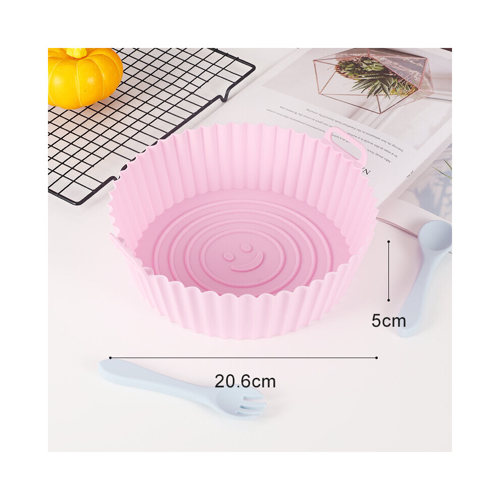 (Pink small) Air Fryer Silicone Basket Reusable Round Air Fryer Bowl Grill Pizza Oven Baking Trays Pan Mats For Home Kitchen Baking Mold