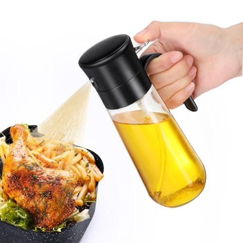 Euqvunn Oil Spray Bottle, Glass Oil Dispenser Bottle [Fine Spray & Clog-Resistant Filter] Small Oil Sprayer Bottles for Kitchen Cooking, Air Fryer, Oven, Barbecue, Salad, Oil/Vinegar/Sauce 280ml