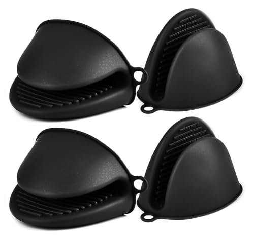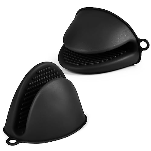 AUAUY 2 Pairs Mini Silicone Oven Mitts, Heat Resistant Pot holders Mitts, Cute Oven Pinch Grip Gloves, Small Potholders for Kitchen, Air Fryer Mitts Pair for Cooking, Baking and Grilling (Black)